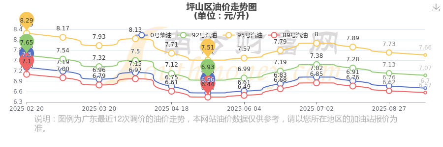 坪山区今日油价:10月23日92号、95号汽油价格多少钱一升?