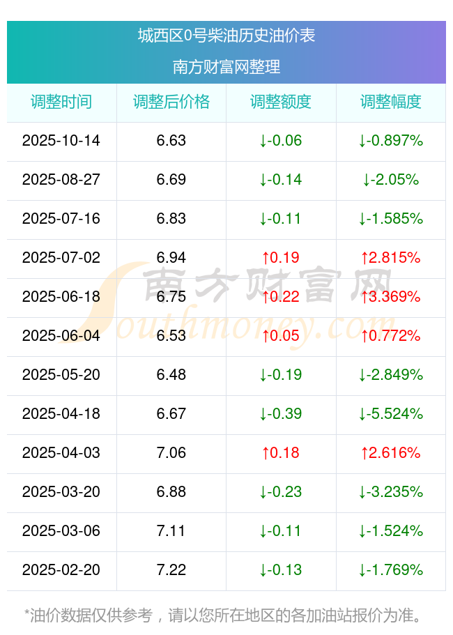 【今日油价查询】10月23日城西区0号柴油油价多少钱一升