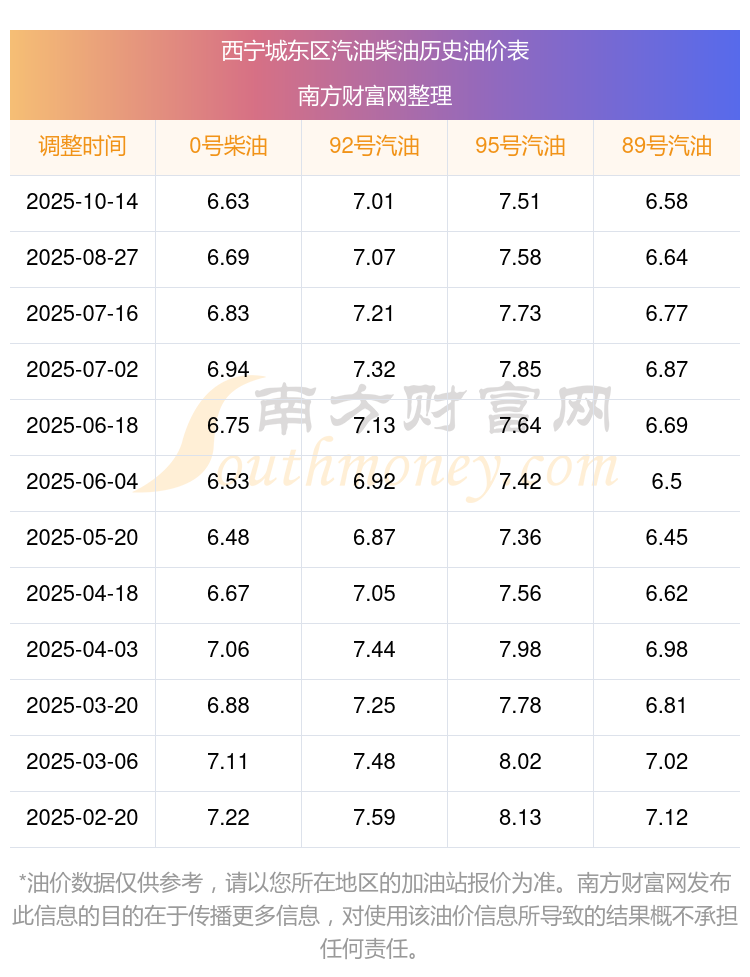 西宁城东区今日油价:10月23日西宁城东区汽油柴油价格查询