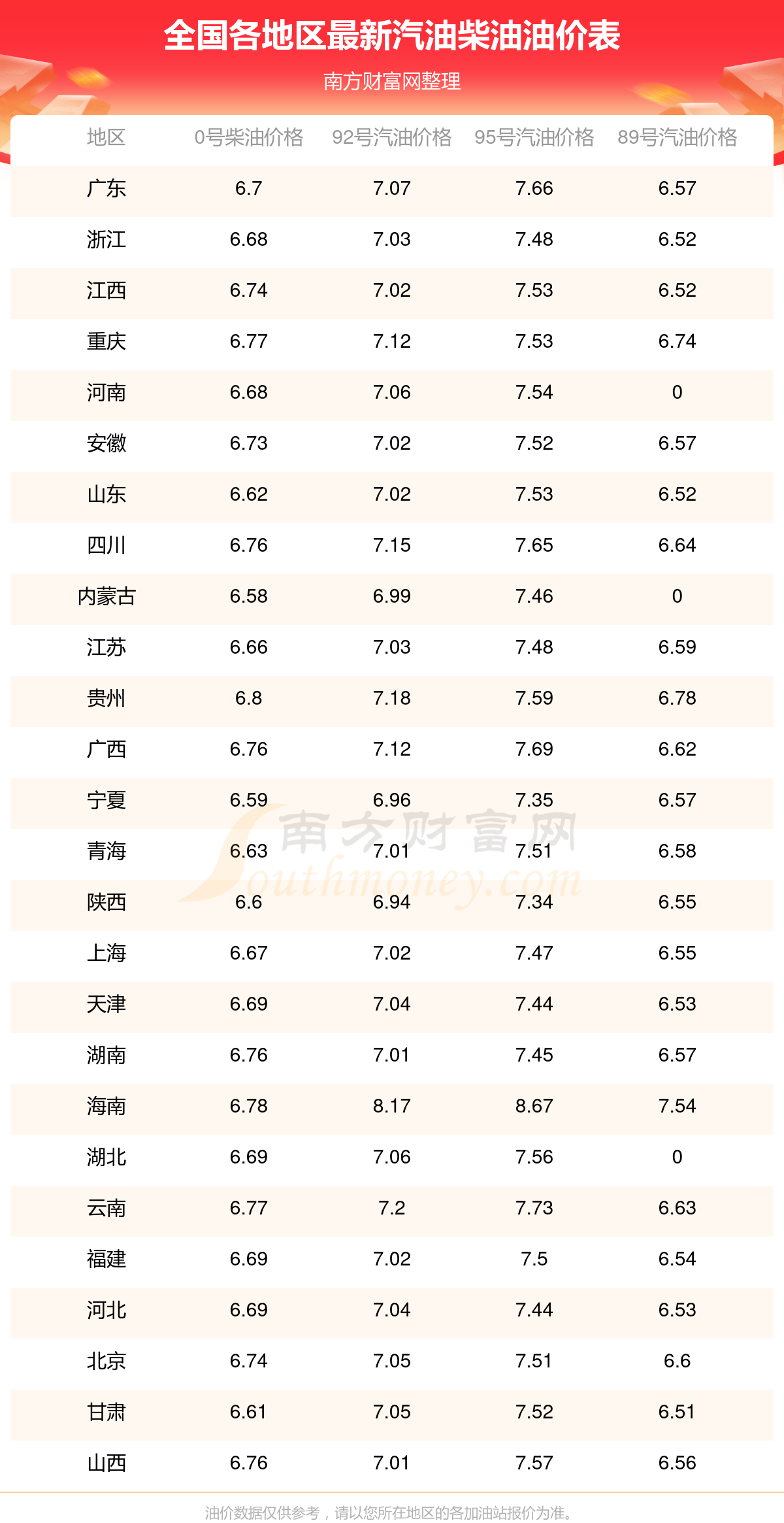 以上数据仅供参考,请以您所在地区的加油站实际售价为准。油价发布此信息的目的在于传播更多信息,对使用该油价信息所导致的结果概不承担责任。