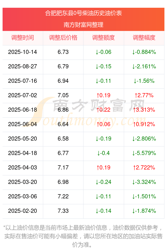 10月23日0号柴油价格表_今日合肥肥东县0号柴油油价一览