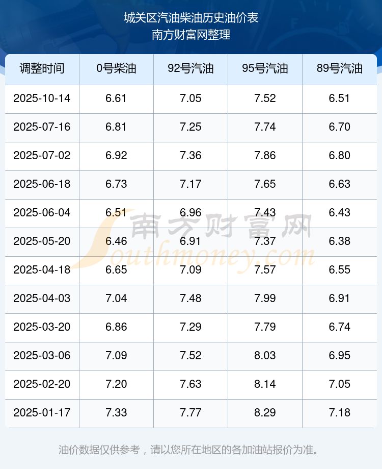 城关区今日油价(10月23日城关区汽油价格查询)