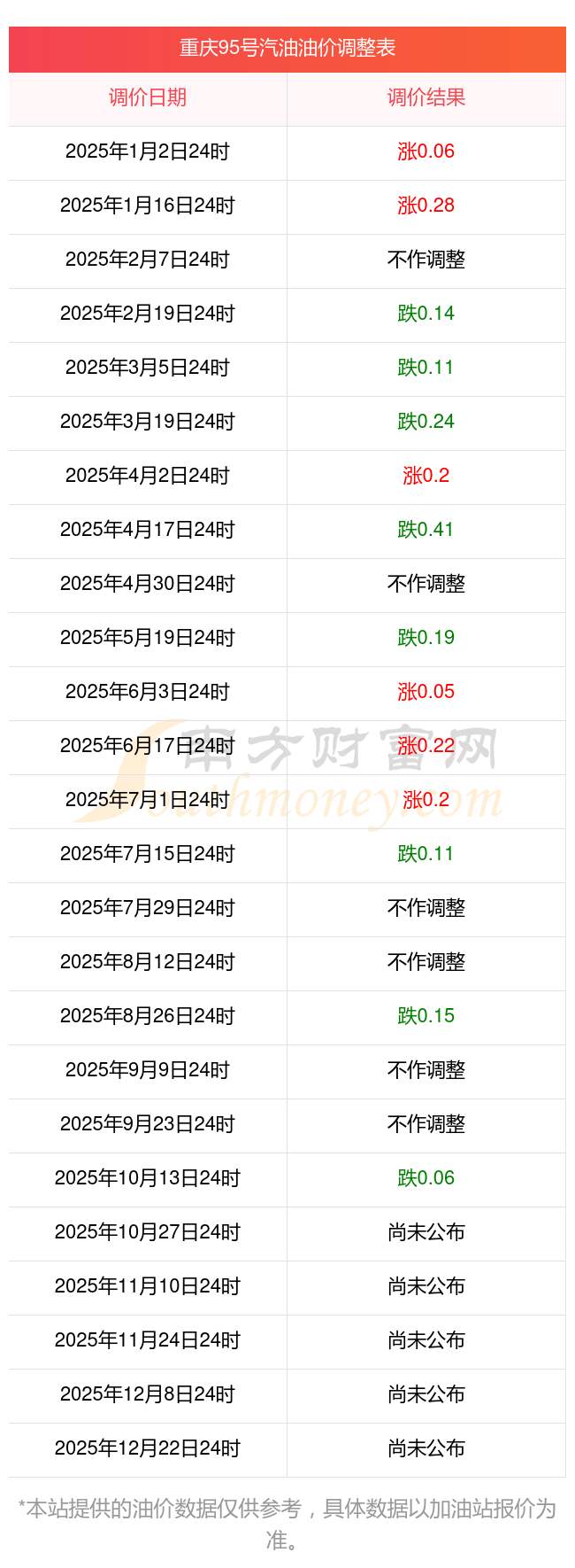 2025年油价调价窗口日期表: