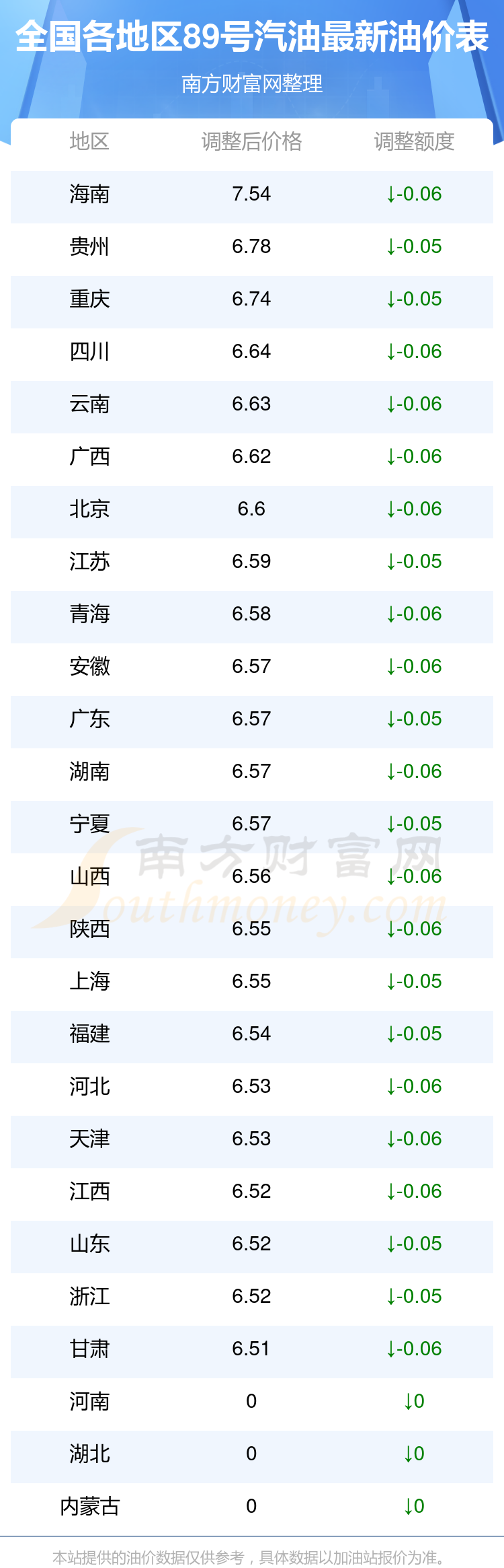 本站提供的油价数据仅供参考,具体数据以加油站报价为准。