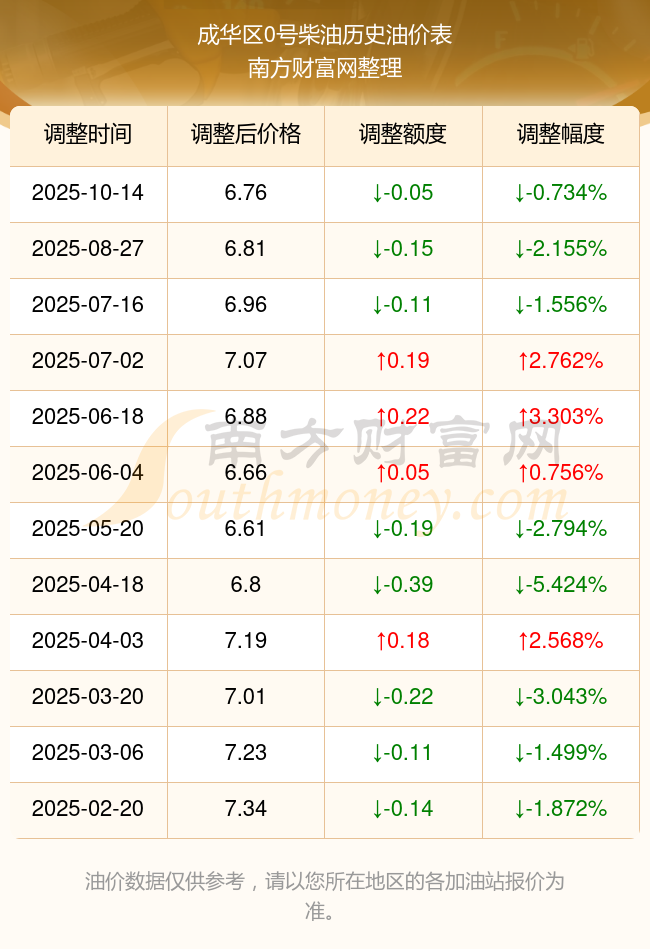 今日0号柴油多少钱一升_10月23日成华区0号柴油油价查询