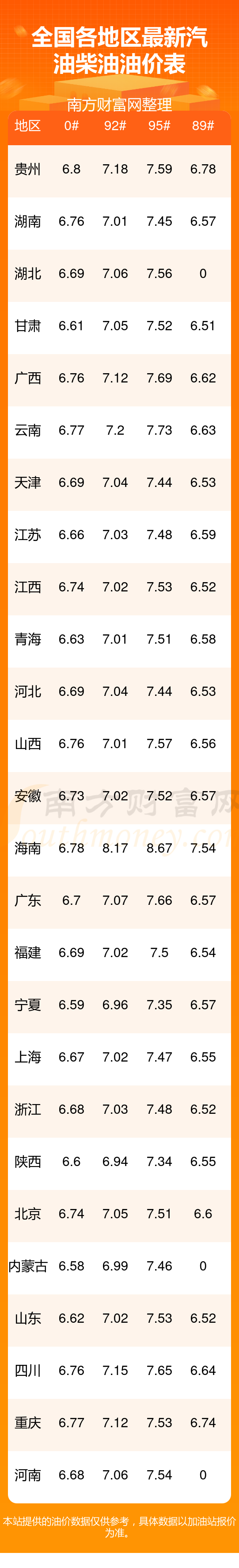 以上数据仅供参考,请以您所在地区的加油站实际售价为准。油价发布此信息的目的在于传播更多信息,对使用该油价信息所导致的结果概不承担责任。