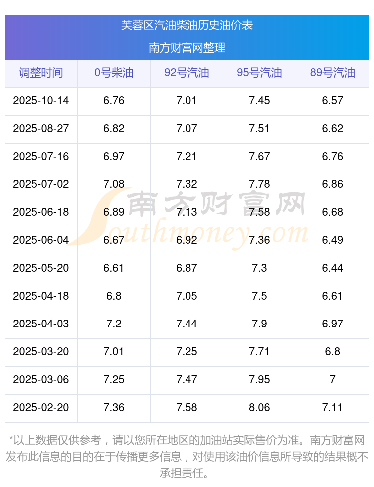 今日芙蓉区油价查询(10月24日92号、95号汽油价格一览)