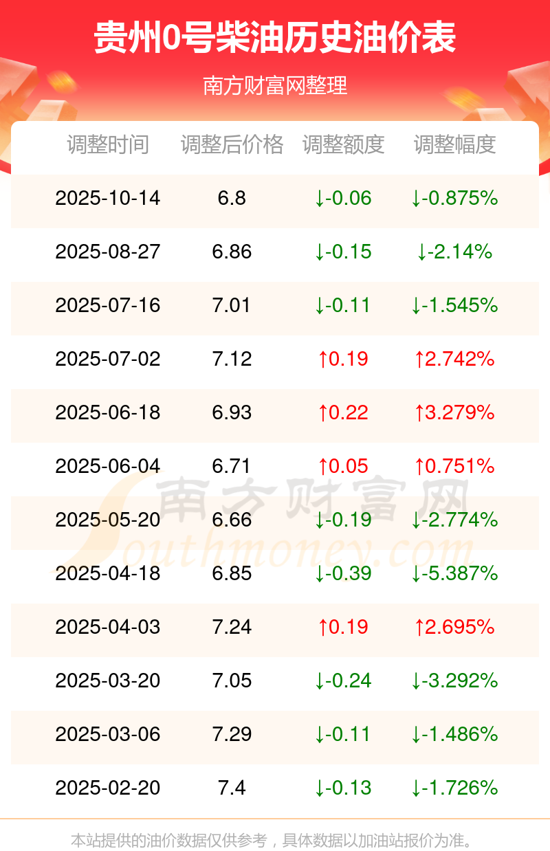 10月24日贵州0号柴油油价表(贵州今日油价)