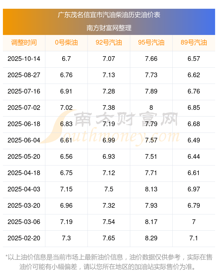 广东茂名信宜市今日油价多少钱一升_今天的汽油价格查询(10月24日)