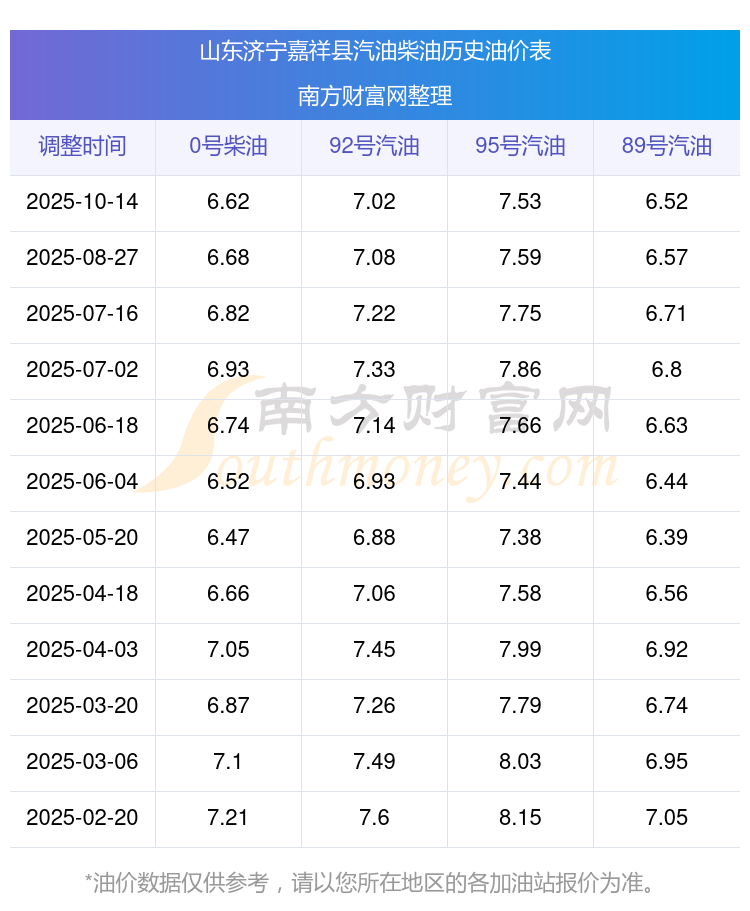 山东济宁嘉祥县汽油柴油油价,今日汽油柴油价格查询(10月24日)
