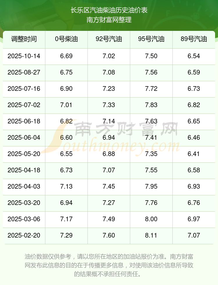 长乐区汽油柴油油价,今日汽油柴油价格查询(10月24日)