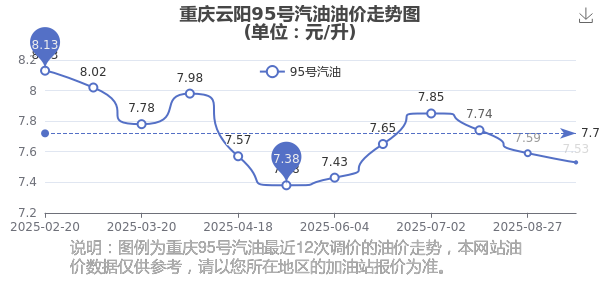 重庆云阳95号汽油历史油价走势图