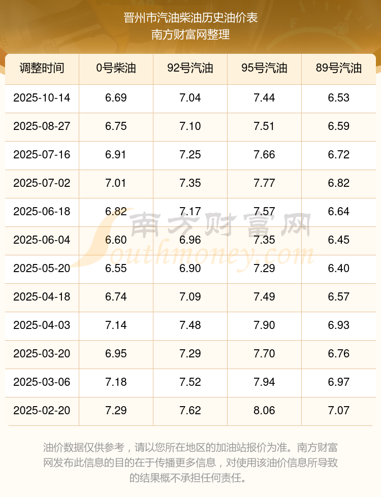 晋州市今日油价(10月24日晋州市汽油价格查询)