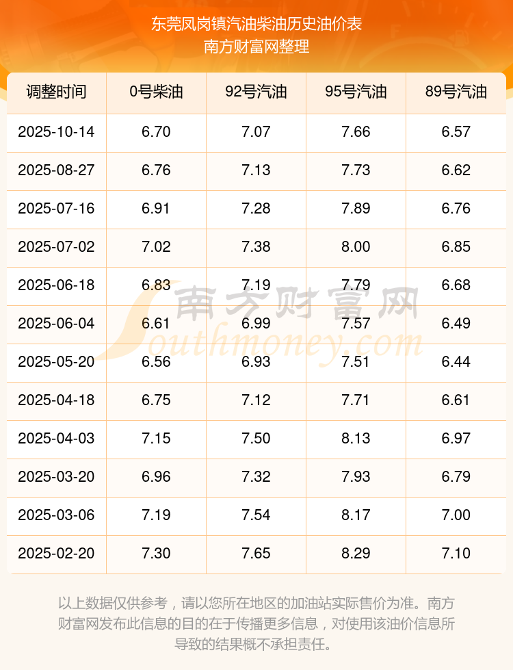 今日东莞凤岗镇汽油价格一览表(10月24日)