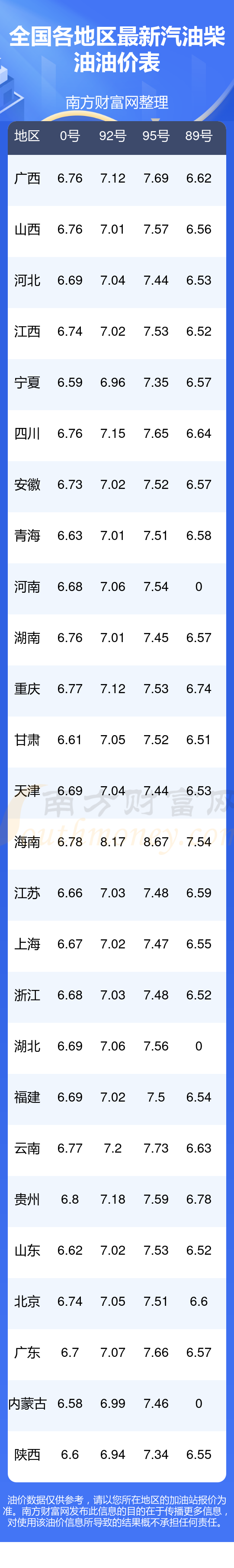 本站提供的油价数据仅供参考,具体数据以加油站报价为准。