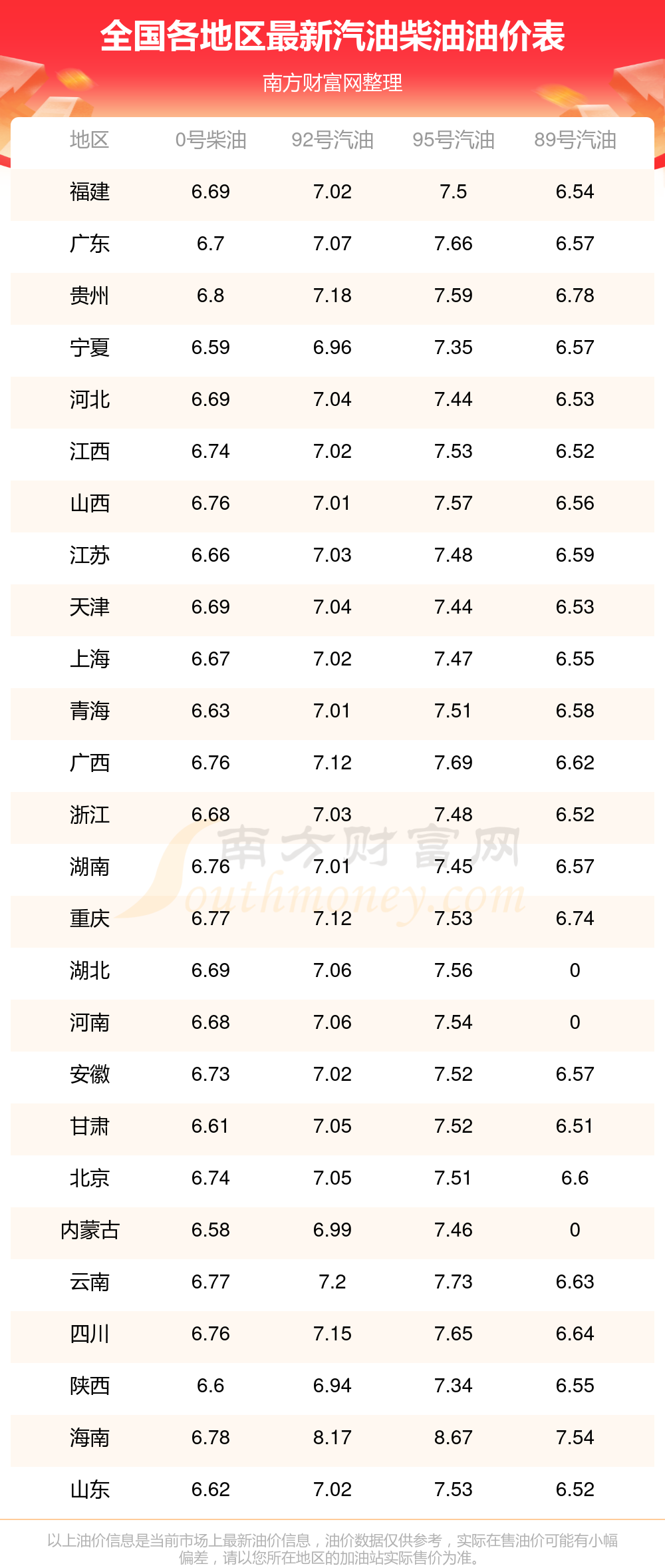 以上油价信息是当前市场上最新油价信息,油价数据仅供参考,实际在售油价可能有小幅偏差,请以您所在地区的加油站实际售价为准。