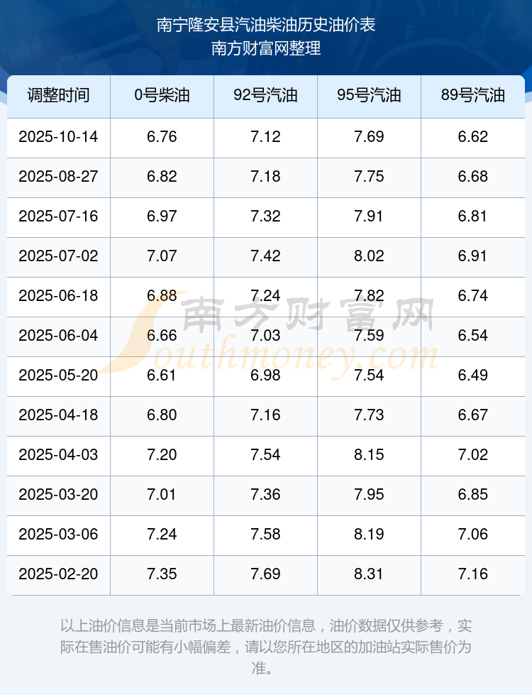 【南宁隆安县今日油价】10月24日汽油价格多少钱一升?