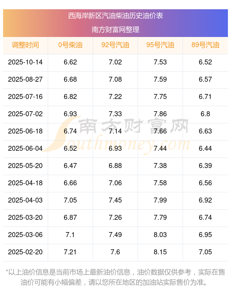 西海岸新区汽油柴油油价,今日汽油柴油价格查询(10月24日)