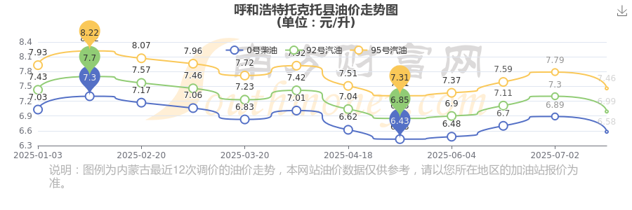 呼和浩特托克托县今日油价:10月24日汽油柴油价格表一览