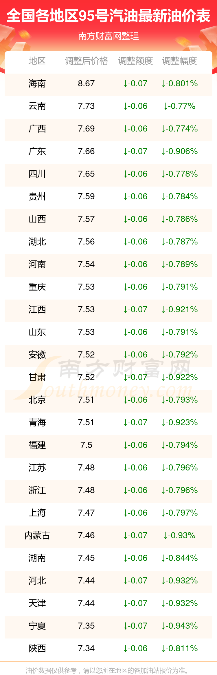 本站提供的油价数据仅供参考,具体数据以加油站报价为准。