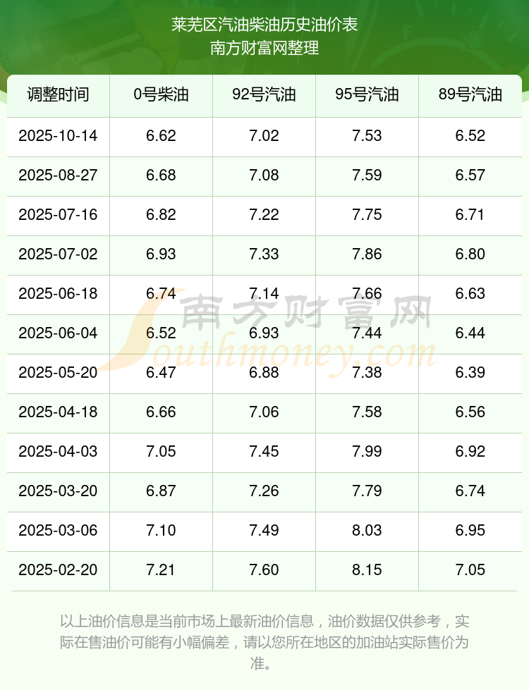 莱芜区今日油价:10月24日莱芜区汽油价格一览表