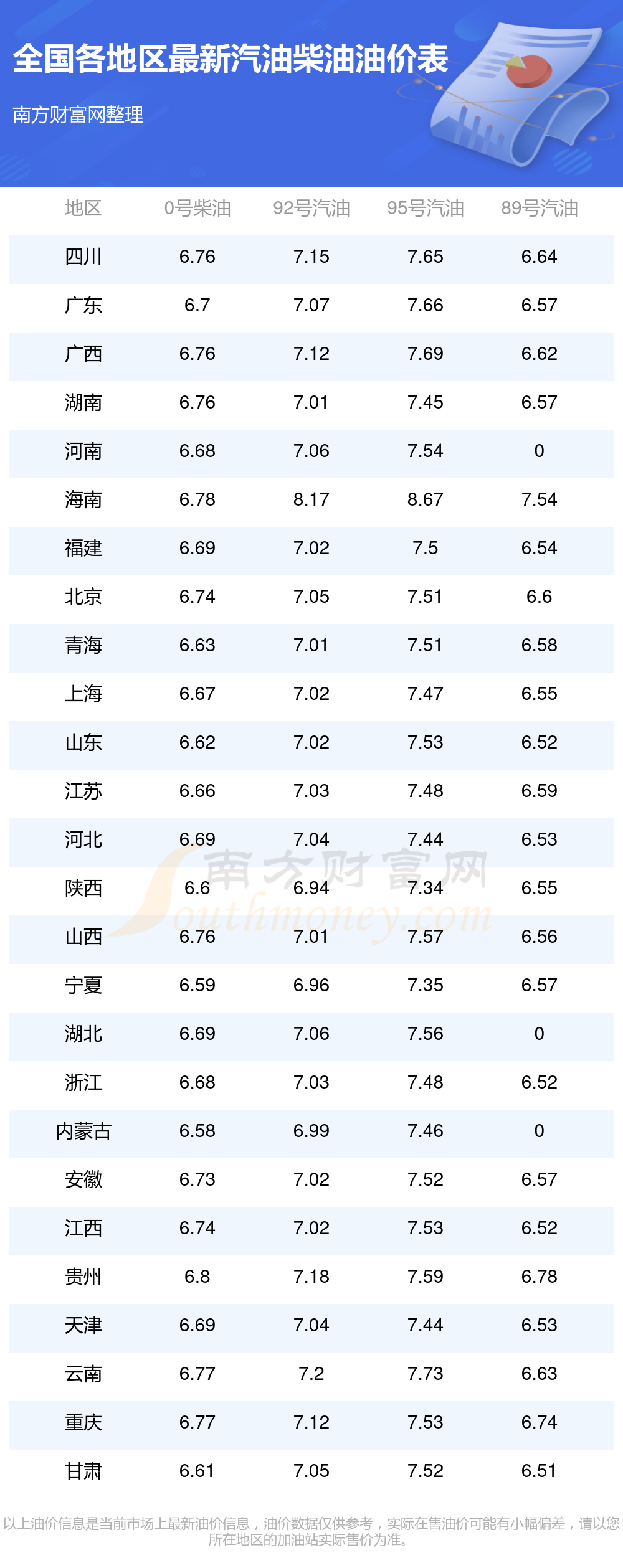 全国各地区最新油价表