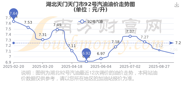 湖北天门天门市92号汽油今日油价_92号汽油多少钱一升(10月24日)