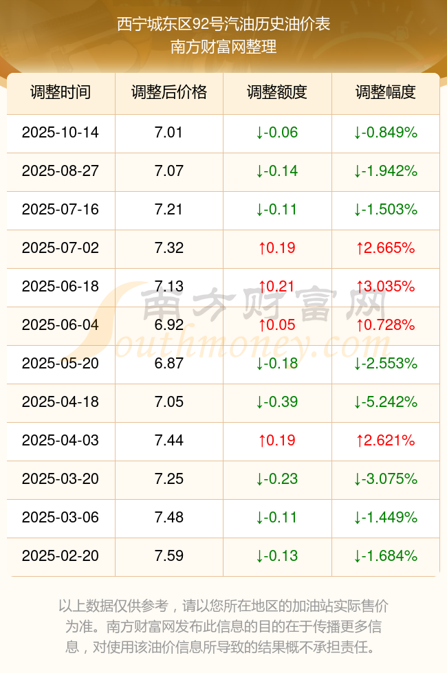 10月24日西宁城东区今日油价:92号汽油油价表一览