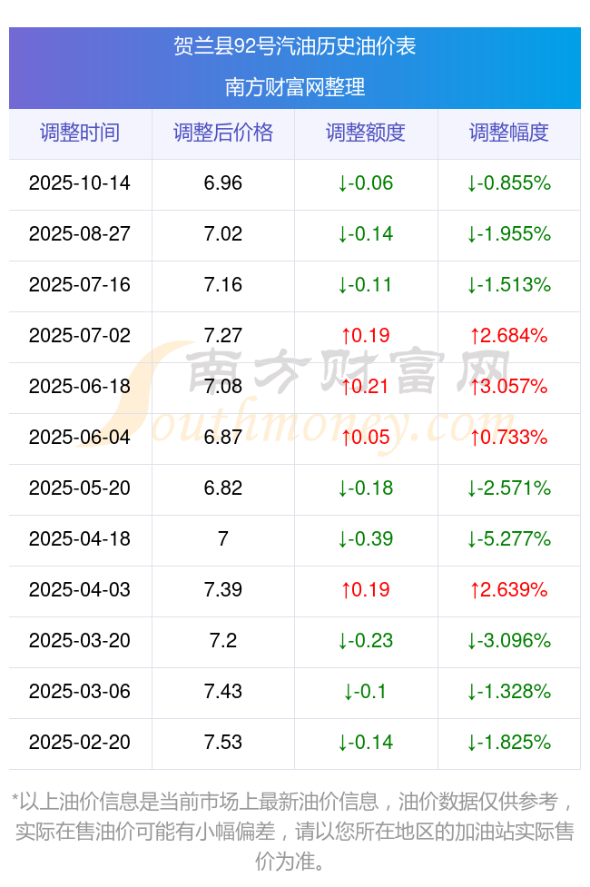 10月24日贺兰县92号汽油油价查询|今日油价查询