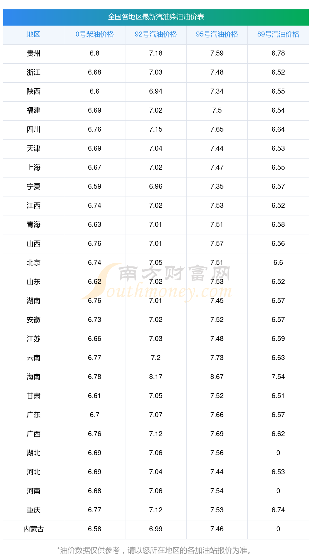 以上数据仅供参考,请以您所在地区的加油站实际售价为准。油价发布此信息的目的在于传播更多信息,对使用该油价信息所导致的结果概不承担责任。