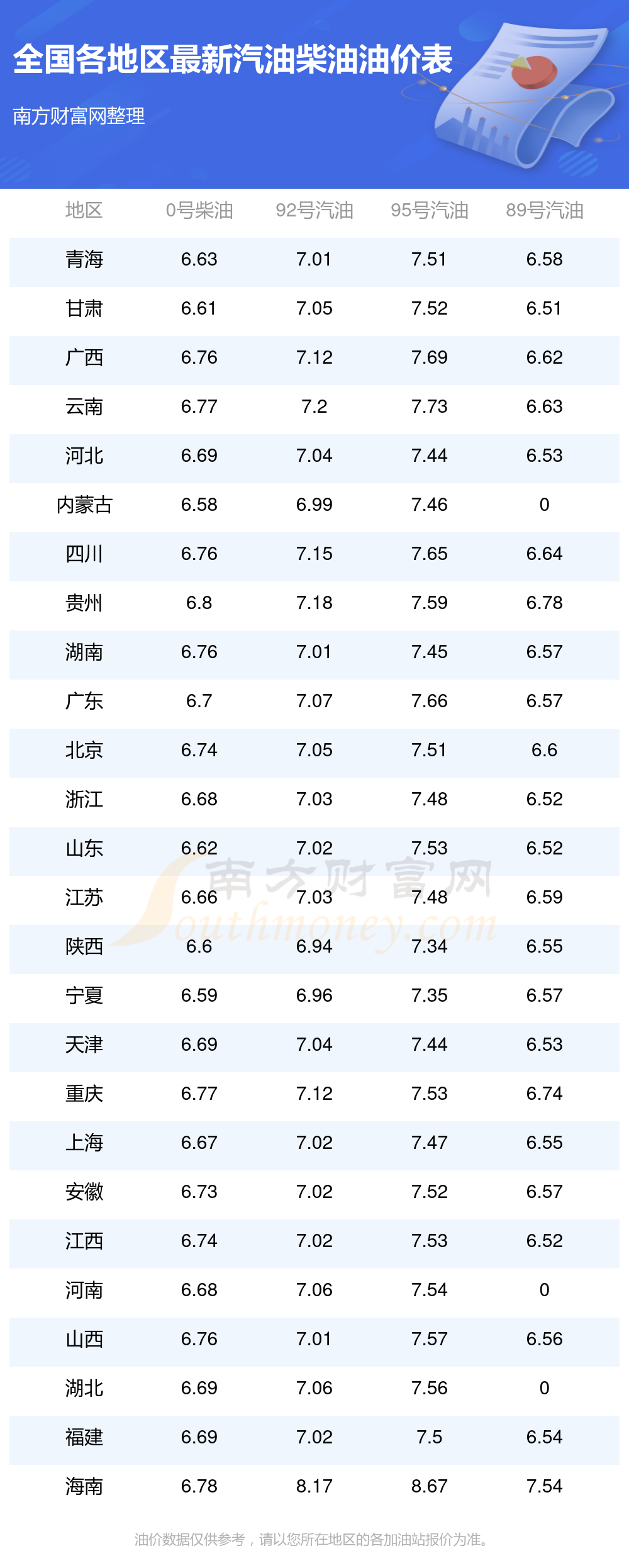 全国各地区最新油价表