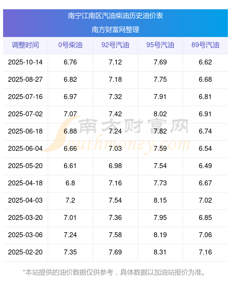 今日南宁江南区油价:10月25日92号、95号汽油价格多少钱一升