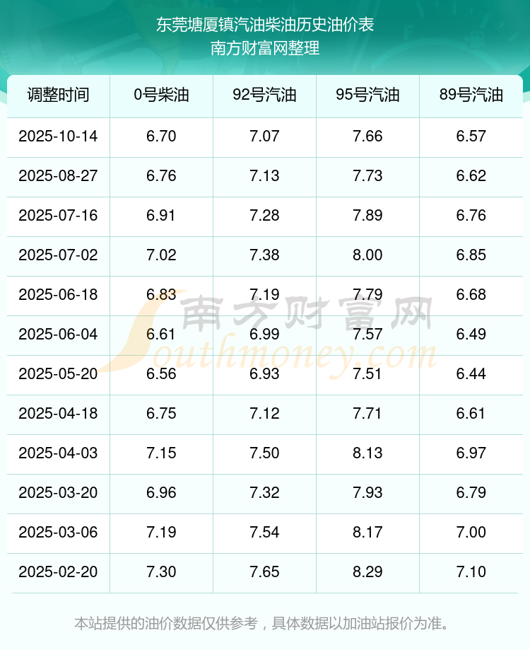 今日油价查询_东莞塘厦镇汽油柴油价格一览表(10月25日)