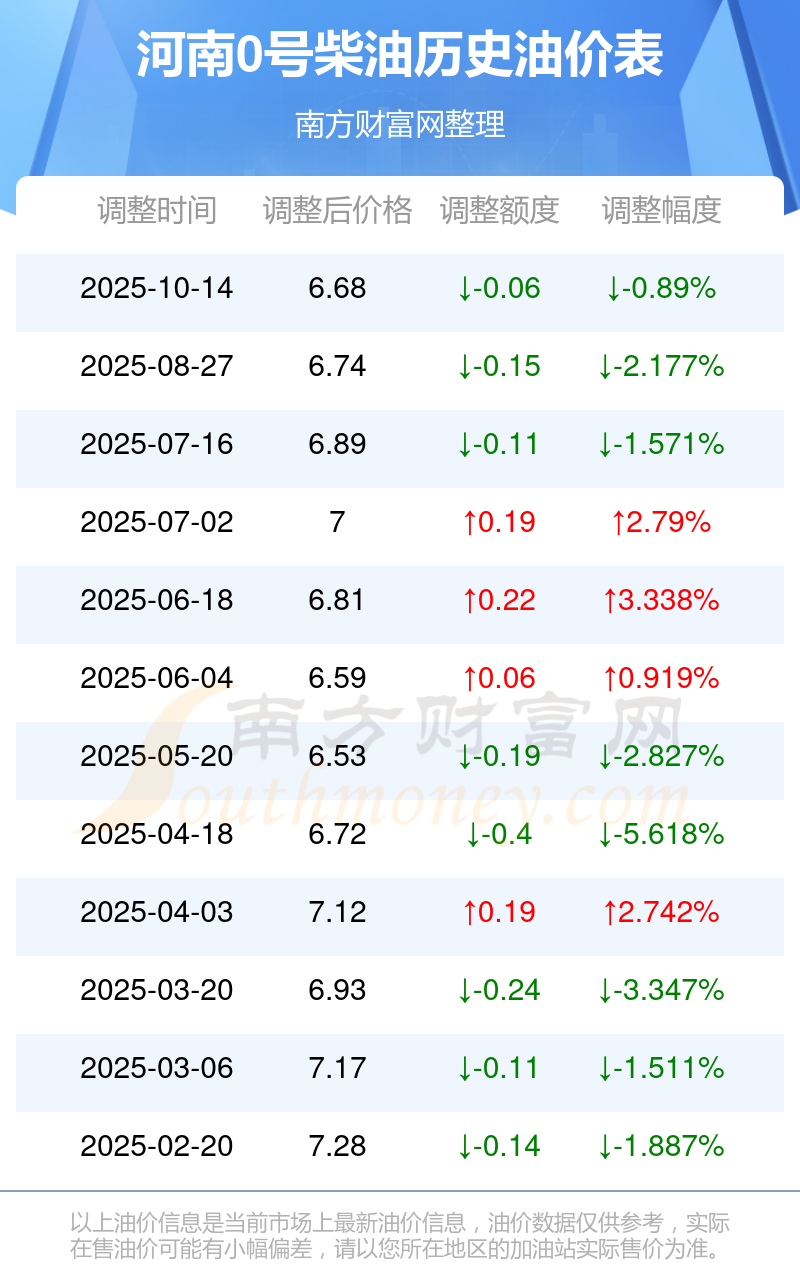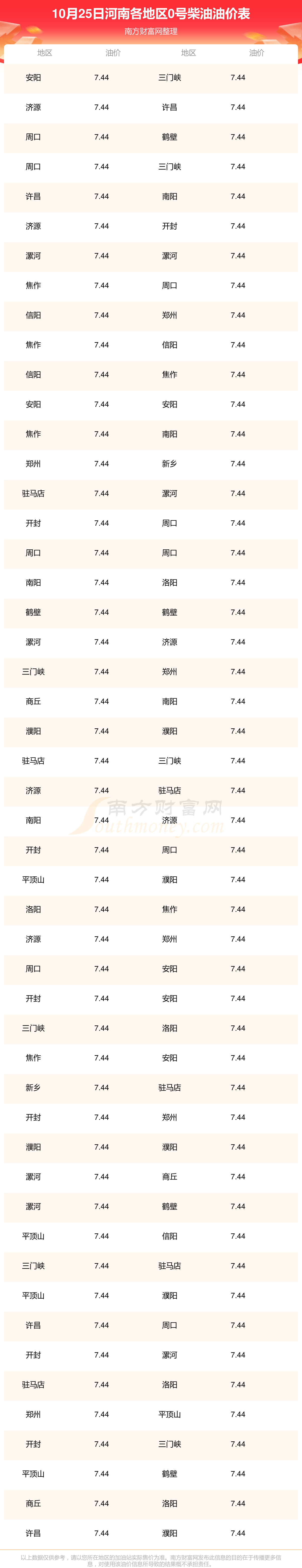 河北0号柴油价格表_今日河北0号柴油油价查询(10月25日)