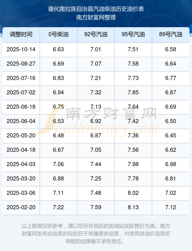 循化撒拉族自治县今日油价:10月25日循化撒拉族自治县汽油柴油价格查询
