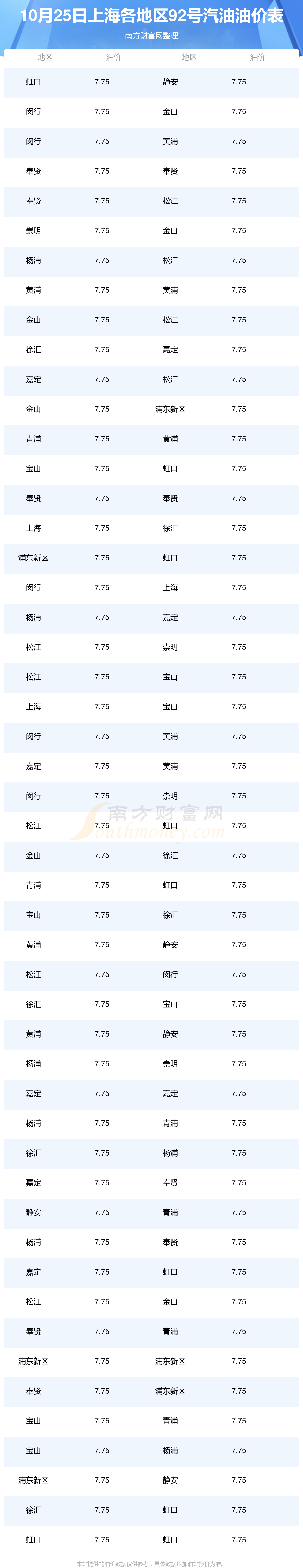10月25日河南汽油价格查询、河南今日油价92号95号汽油多少钱一升? 油价网2025-10-25 10:00 福州马尾区今日油价表_92号95号汽油价格查询(10月25日) 油价网2025-10-25 09:59 重庆今日油价_今日重庆92号汽油多少钱一升(10月25日) 油价网2025-10-25 09:59 循化撒拉族自治县今日油价:10月25日循化撒拉族自治县汽油柴油价格查询 油价网2025-10-25 09:58