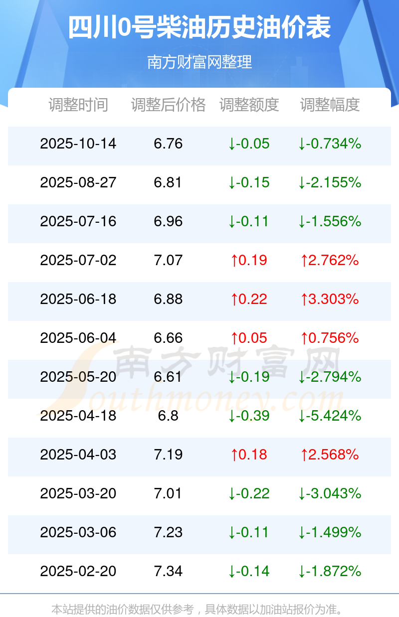 今日0号柴油多少钱一升(10月25日0号柴油油价价格) 油价网2025-10-25 09:56 兰州安宁区油价查询_10月25日92号、95号汽油价格一览表 油价网2025-10-25 09:55 10月25日河南0号柴油价格表(多少钱一升) 油价网2025-10-25 09:49