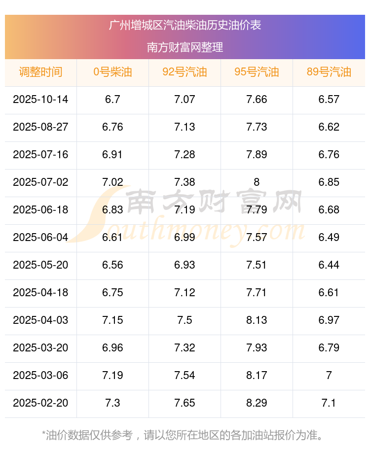 广州增城区今日油价查询_广州增城区汽油价格一览表(10月25日)