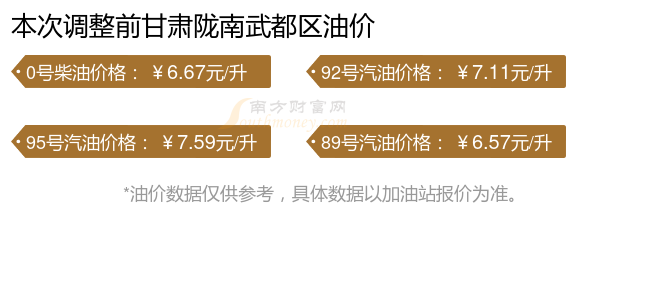 今日甘肃陇南武都区油价:10月25日甘肃陇南武都区汽油价格表一览