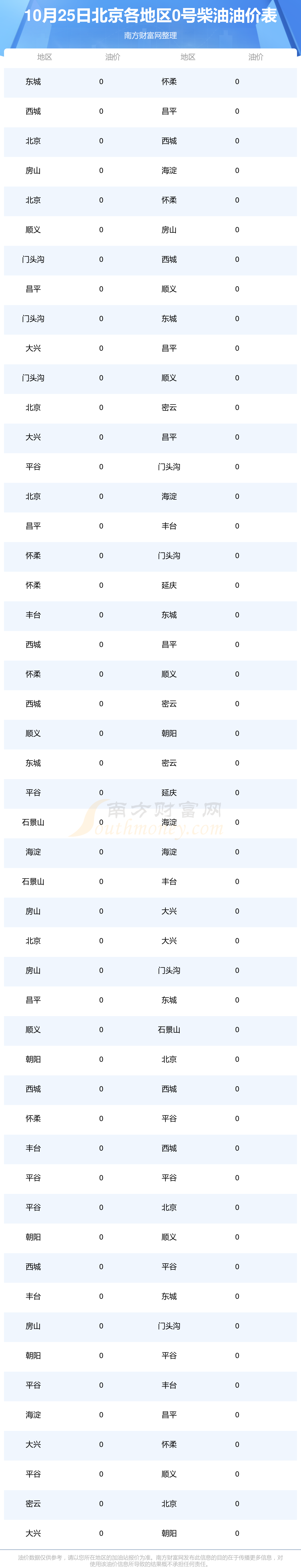 北京今日油价_北京0号柴油油价查询(10月25日)