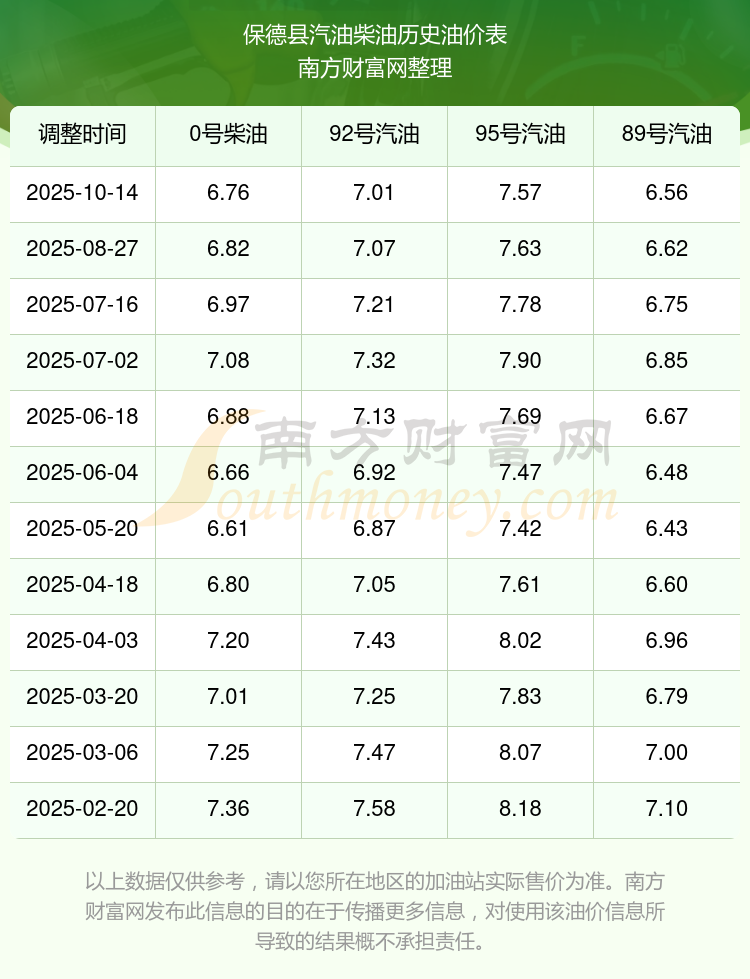 保德县今日油价查询_保德县汽油价格一览表(10月25日)