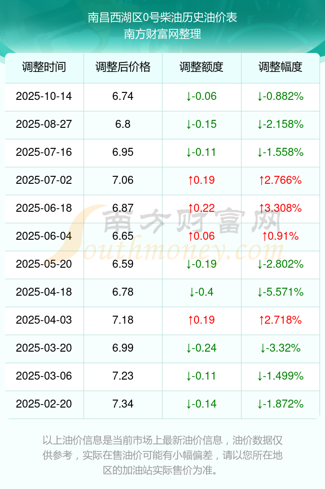10月25日南昌西湖区0号柴油油价多少钱一升(今日油价查询)