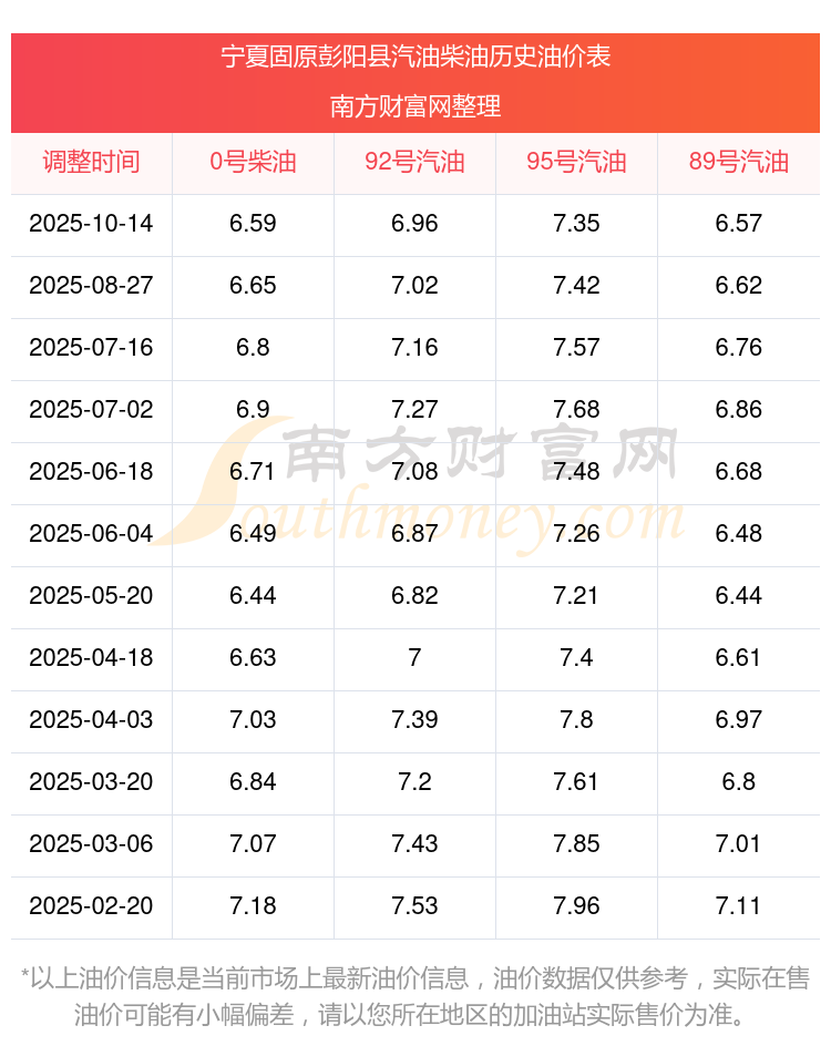【宁夏固原彭阳县今日油价】10月25日汽油价格多少钱一升?