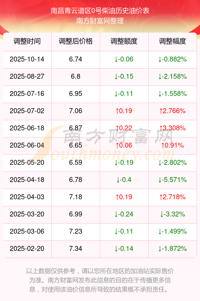 南昌青云谱区0号柴油今日油价_0号柴油多少钱一升(10月25日)