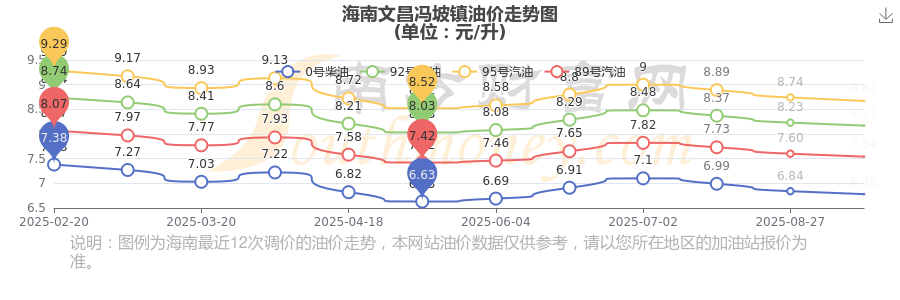 今日海南文昌冯坡镇油价:10月25日海南文昌冯坡镇汽油价格表一览