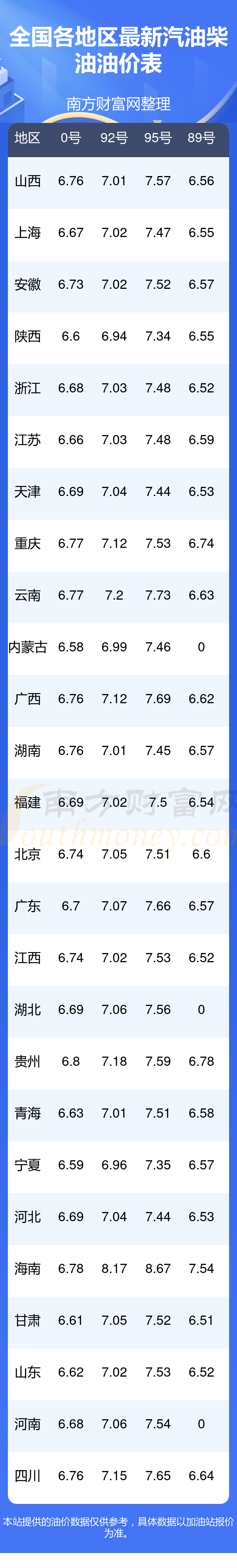 本站提供的油价数据仅供参考,具体数据以加油站报价为准。
