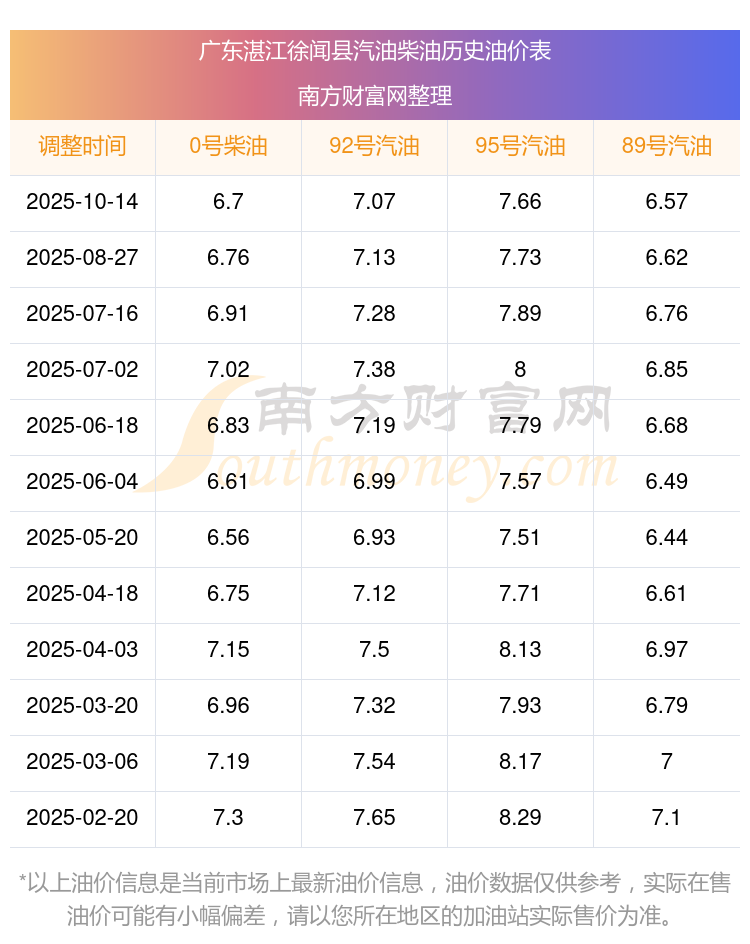 广东湛江徐闻县油价今天多少钱一升_10月25日汽油价格多少
