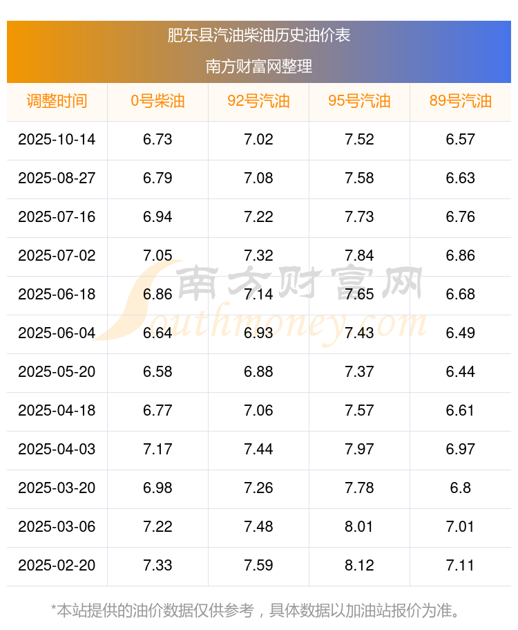 今日肥东县油价(肥东县10月25日汽油价格查询)