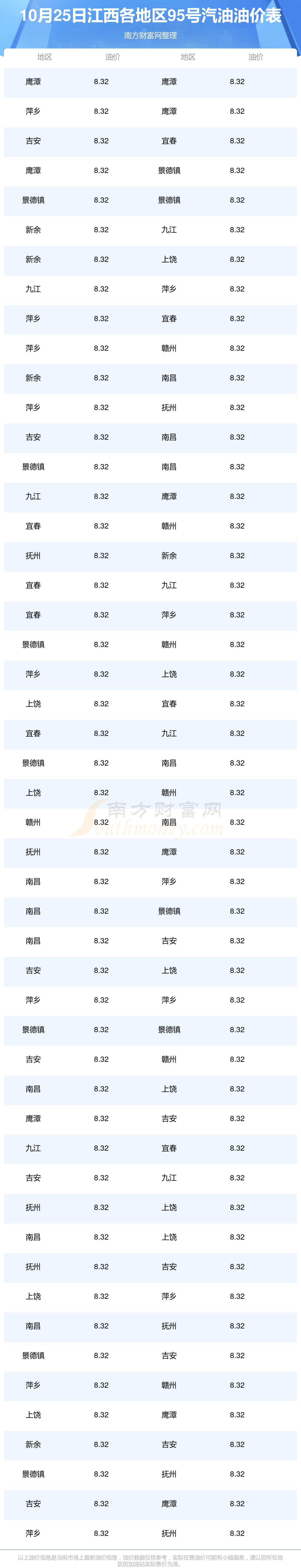 10月25日今日油价92号95号汽油价格多少钱一升?上海最新数据 油价网2025-10-25 19:19 甘肃油价今日价格(10月25日甘肃0号柴油油价查询) 油价网2025-10-25 19:16 今日道滘镇油价查询(10月25日汽油价格表一览) 油价网2025-10-25 19:15 南昌东湖区今日油价:10月25日南昌东湖区汽油柴油价格查询 油价网2025-10-25 19:07
