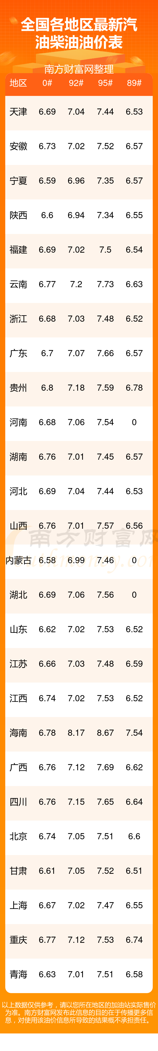 本站提供的油价数据仅供参考,具体数据以加油站报价为准。